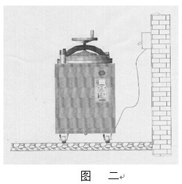 4:滅菌器電源與網(wǎng)電源為**連接,使用者必須在滅菌器距離建筑物60厘米,高度大于1.2 米, 便于操作的位置處裝置斷路器作為滅菌器電源的斷開裝置(見圖二)。電源線在接入斷路器前應(yīng)在建筑物上加以固定以免脫落,與網(wǎng)電源連接線線徑為2.5mm2 ×3,棕色(或紅色)L為火線,藍(lán)色(或綠色)N為零線,黃綠雙色G為保護(hù)接地線。應(yīng)使用有G家安全認(rèn)證的斷路器并符合GB14048.1和GB14048.3標(biāo)準(zhǔn)有關(guān)要求,設(shè)備電源線接入斷路器之前應(yīng)與建筑物固定,防止從斷路器重脫落。并在斷路器下方標(biāo)識此斷路器為滅菌器專用,工作結(jié)束后,關(guān)閉斷路器。