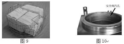 將包扎好的滅菌物品(體積以200×200×100mm為宜),各包之間留有間隙,依次堆放在滅菌筐內(圖9),有利于蒸汽穿透,提高滅菌效果。堆放滅菌包時應注意留出安全閥排汽孔(圖10)空隙,否則因安全閥汽孔堵塞未能泄壓,造成鍋體爆裂事故。