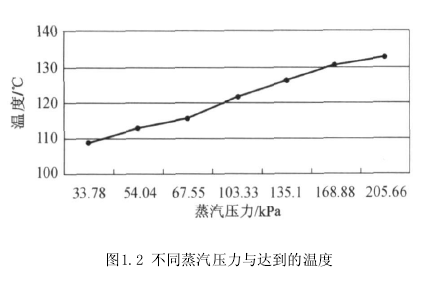 滅菌器中不同蒸汽壓力和溫度關(guān)系曲線見圖1.2[6]
