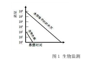 要尋找適合的滅菌監(jiān)控手段,shou先需了解影響滅菌效果的主要因素。在滅菌環(huán)境相同的情況下,產(chǎn)品上負(fù)載的微生物的抗力和數(shù)量,是影響滅菌效率的關(guān)鍵因素。通常,由于對(duì)于原材料的來(lái)源和微生物的數(shù)量有嚴(yán)格要求,加上對(duì)于儲(chǔ)存和生產(chǎn)車(chē)間的潔凈要求(不同產(chǎn)品有不同要求),在滅菌前所攜帶的微生物的數(shù)量是有限的。生物監(jiān)測(cè)使用所攜帶微生物的數(shù)量和抗力都遠(yuǎn)大于實(shí)際生物負(fù)載的生物指示劑,與生物負(fù)載處于相同或更難滅菌的環(huán)境中(如將生物指示劑放置于過(guò)程挑戰(zhàn)設(shè)備{Process Challenge Device}中) 同時(shí)進(jìn)行滅菌,然后觀察生物指示劑中微生物的殺滅情況,來(lái)判斷整個(gè)負(fù)載的有效性。圖1解釋了生物指示劑監(jiān)控整個(gè)負(fù)載并可靠反映其效果的原理:當(dāng)生物指示劑被殺滅的時(shí)候,生物負(fù)載早已被殺滅了。